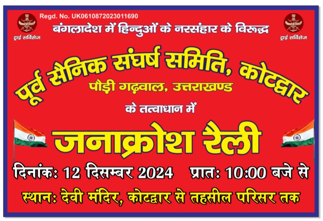 आयोजन: पूर्व सैनिक संघर्ष समिति कोटद्वार द्वारा “हिंदू एक हो जाओ” रैली