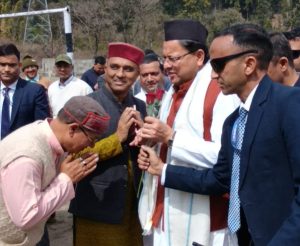 मंगलवार आज मुख्यमंत्री पुष्कर सिंह धामी जिले के एक दिवसीय भ्रमण कार्यक्रम के तहत शहीद मेले का शुभारम्भ करने दुगड्डा पहुंचे। मुख्यमंत्री धामी हेलीकाप्टर से डाडामंडी हेलीपेड पहुंचे। यहां यमकेश्वर विधायक रेनू बिष्ट, जिलाधिकारी डॉ. आशीष चौहान, वरिष्ठ पुलिस अधीक्षक लोकेश्वर सिंह और भाजपा पदाधिकारियों ने उनका स्वागत किया।