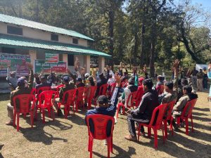 आज दिनांक 03/03/2025 को प्रभागीय वनाधिकारी  सी. बी. जोशी के निर्देश में विश्व वन्य जीव सुरक्षा दिवस एवं अग्नि सुरक्षा गोष्टी रिंग लाना रेंज द्वारा विभिन्न वन पंचायत जिसमें 30 सरपंच 27 सदस्य 18 वन कर्मी प्रतिभा किया। कार्यक्रम में अग्नि ग्रीष्मकल वनों का अग्नि से बचने हेतु विचार विमर्श एवं जन जागरूकता कार्यक्रम किया गया।
