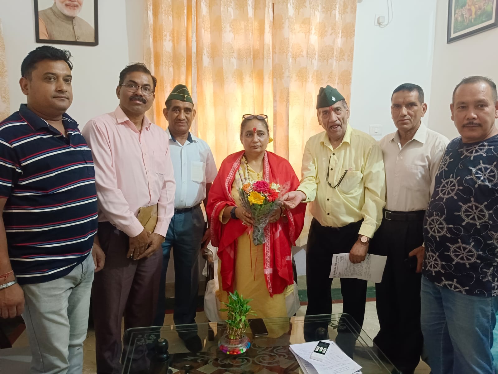 आज पूर्व सैनिक सेवा परिषद कोटद्वार इकाई के पूर्व सैनिकों का प्रतिनिधिमंडल द्वारा विधानसभा अध्यक्षा एवं विधायक कोटद्वार श्रीमती रितु भूषण खंडूड़ी को उनके आवास पर मिलकर केंद्रीय विद्यालय के संचालन करवाने हेतु पुष्प गुच्छ एवं अंग वस्त्र भेंट कर उनका सम्मान, आभार व धन्यवाद किया गया।
